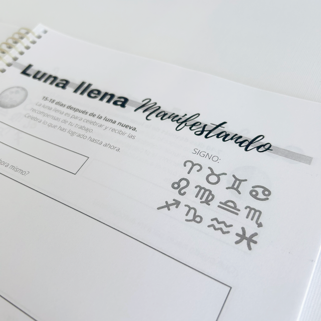 La Luna atraviesa distintas fases, y cada una activa una energía particular según el signo que esté transitando. Este planificador fue creado para que puedas acompañar ese movimiento de manera consciente y registrar tu propio proceso.